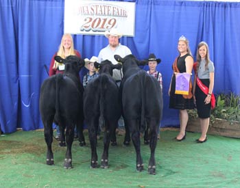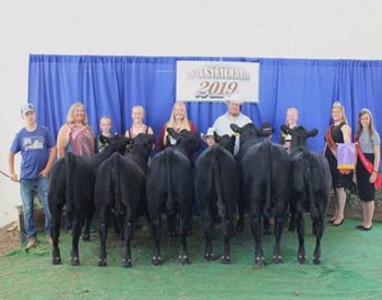 Janssen Angus, Earlham, Iowa, won breeders' best six head at the 2019 Iowa State Fair Angus Show, Aug. 13 in Des Moines, Iowa. Photo by Adam Conover, American Angus Association.