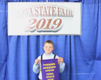 Cale Jensen, Plainfield, Iowa, won premier breeder at the 2019 Iowa State Fair Angus Show, Aug. 13 in Des Moines, Iowa. Photo by Adam Conover, American Angus Association.