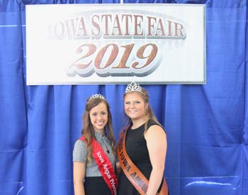 These young ladies were crowned as Angus royalty and are pictured at the 2019 Iowa State Fair Angus Show, Aug. 13 in Des Moines, Iowa. Pictured from left are Allie Bieber, Waukon, Iowa, Angus princess; and Maggie Maas, Adair, Iowa, Miss Iowa Angus. Photo by Adam Conover, American Angus Association.