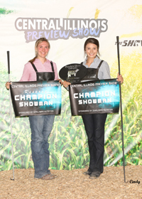 These junior Angus members won top honors in the intermediate A division of showmanship at the 2020 Illinois Junior Angus Association Field Day, July 4 in Bloomington, Ill. Pictured from left are Lizzie Schafer, Owaneco, Ill., reserve champion; and Paige Van Dyke, Louisville, Ill., champion. Photo by Cindy Cagwin-Johnston.
