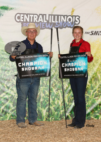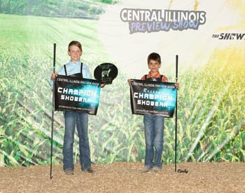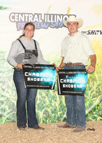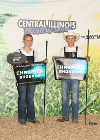 These junior Angus members won top honors in the senior showmanship division at the 2020 Illinois Junior Angus Association Field Day, July 4 in Bloomington, Ill. Pictured from left are Korbin Collins, Flanagan, Ill., champion; and Eric Schafer, Owaneco, Ill., reserve champion. Photo by Cindy Cagwin-Johnston.