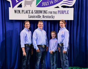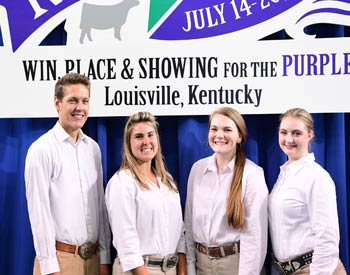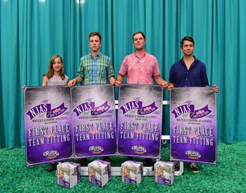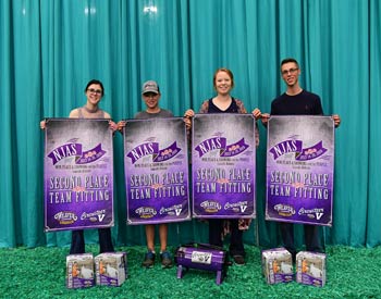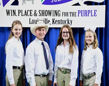 Iowa junior members won second place finish in the fitting contest at the 2019 National Junior Angus Show (NJAS) Awards Ceremony, July 14-20 in Louisville, Ky. Pictured from left are Morgan McDermott, Wiota; Ky Curran, Chariton; Haley Greiman, Perry; and Walker McDermott, Wiota. Photo by Pearls Pics, on behalf of the American Angus Association.