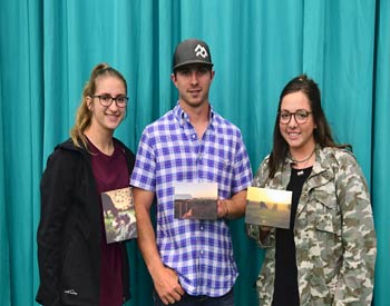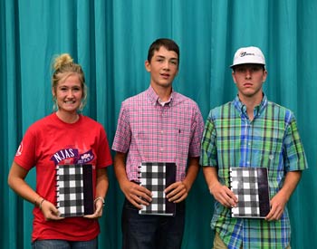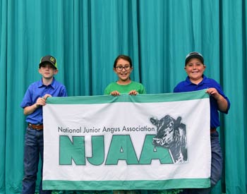 These junior members were overall winners in the intermediate B division career development at the 2019 National Junior Angus Show (NJAS) Awards Ceremony, July 14-20 in Louisville, Ky. Pictured from left are Eric Schafer, Owaneco, Ill., first; Jace Stagemeyer, Page, Neb., second; and Kady Figge, Onaga, Kan., third. Photo by Pearls Pics, on behalf of the American Angus Association.