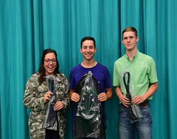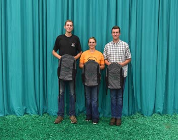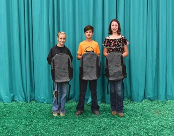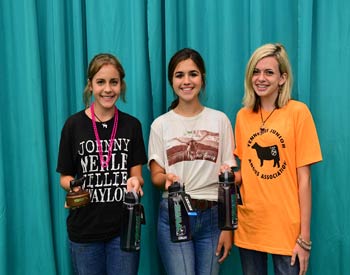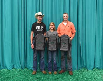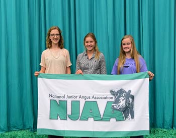 These junior members won top honors in the Flat Andy Contest at the 2019 National Junior Angus Show (NJAS) Awards Ceremony, July 14-20 in Louisville, Ky. Pictured from left are Claire Kuipers, Le Roy, Ill., first; Adam McCauley, Cynthiana, Ky., second; and Hannah Beatty, Pulaski, Miss., third. Photo by Pearls Pics, on behalf of the American Angus Association.