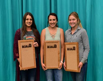 These junior Angus members won top honors in the senior division of photography--around the farm or ranch at the 2019 National Junior Angus Show (NJAS) Awards Ceremony, July 14-20 in Louisville, Ky. Pictured from left are Crystal Stowers, Westminister, Md., first; Katie Brock, Stilesville, Ind., second; and Jenna Hamilton, Buena Vista, Va., third. Photo by Pearls Pics, on behalf of the American Angus Association.