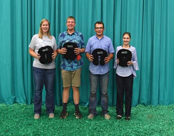 Nebraska juniors won second place in the intermediate division of the quiz bowl at the 2019 National Junior Angus Show (NJAS) Awards Ceremony, July 14-20 in Louisville, Ky. Pictured from left are TaraLee Hudson, Belvidere; Joshua Shaw, Fairfield; Jace Stagemeyer, Page; and Rachel Smith, Osceola. Photo by Pearls Pics, on behalf of the American Angus Association.