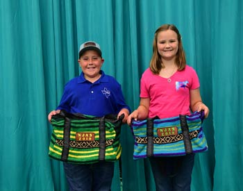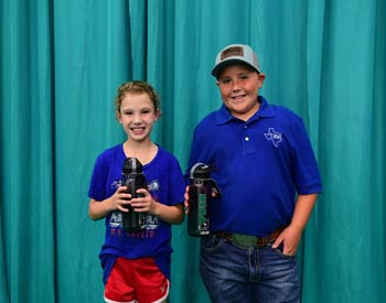These junior members won top honors in the junior A division of extemporaneous speaking at the 2019 National Junior Angus Show (NJAS) Awards Ceremony, July 14-20 in Louisville, Ky. Pictured from left are Kensley Free, Salado, Texas, second; and Brantley Humpert, Windthorst, Texas, third. Photo by Pearls Pics, on behalf of the American Angus Association.
