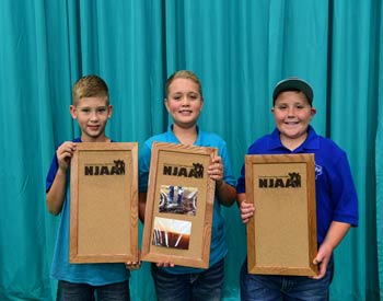 These junior Angus members won top honors in the junior division of photography--Angus cattle at the 2019 National Junior Angus Show (NJAS) Awards Ceremony, July 14-20 in Louisville, Ky. Pictured from left are Cooper Woodrow, first, and Austin Woodrow, second, both of Emporia, Kan.; and Brantley Humpert, Windthorst, Texas, third. Cooper also won first place overall in the junior division of photograpy. Photo by Pearls Pics, on behalf of the American Angus Association.