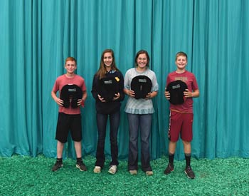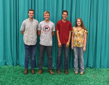 Missouri juniors won first place in the senior division of the quiz bowl at the 2019 National Junior Angus Show (NJAS) Awards Ceremony, July 14-20 in Louisville, Ky. Pictured from left are Truman Byergo, Dearborn; Levi Blankenship, Gibbs; Tommy Otte, Saint Mary; and Emily Sinning, Mansfield. Photo by Pearls Pics, on behalf of the American Angus Association.