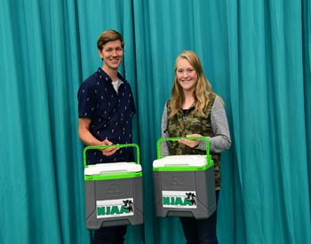 These junior members won top honors in the junior A division of prepared public speaking at the 2019 National Junior Angus Show (NJAS) Awards Ceremony, July 14-20 in Louisville, Ky. Pictured from left are Brantley Humpert, Windthorst, Texas, second; and Claire Kuipers, Le Roy, Ill., first. Photo by Pearls Pics, on behalf of the American Angus Association.