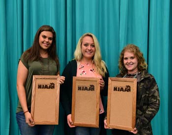 These junior Angus members won top honors in the senior division of photography--Angus cattle at the 2019 National Junior Angus Show (NJAS) Awards Ceremony, July 14-20 in Louisville, Ky. Pictured from left are Blair Buchanon, Lakeland, Fla., first; Jenna Hamilton, Buena Vista, Va., second; and Madeline Fugate, Mahomet, Ill., third. Blair was also the overall winner of the entire senior division of photography. Photo by Pearls Pics, on behalf of the American Angus Association.