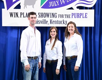 Virginia junior members won second place in the senior division of team sales at the 2019 National Junior Angus Show (NJAS) Awards Ceremony, July 14-20 in Louisville, Ky. Pictured from left are Jake McCall, Greenville; Sarah Harris, Buchanan; and Makayla St. Clair, Berryville. Photo by Pearls Pics, on behalf of the American Angus Association.