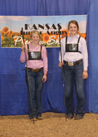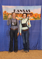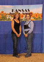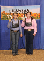 These junior Angus members won top honors in intermediate showmanship at the 2020 Kansas Junior Angus Association Preview Show, June 6-7 in Hutchinson, Kan. Pictured from left are Kelsey Theis, Leavenworth, champion; and Caroline Wingert, Ottawa, reserve champion. Photo by Jeff Mafi, American Angus Association.