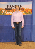 Jayce Dickerson, Paradise, won Kansas Angus Auxiliary premier junior breeder at the 2020 Kansas Junior Angus Association Preview Show, June 6-7 in Hutchinson, Kan. Photo by Jeff Mafi, American Angus Association.