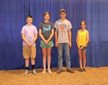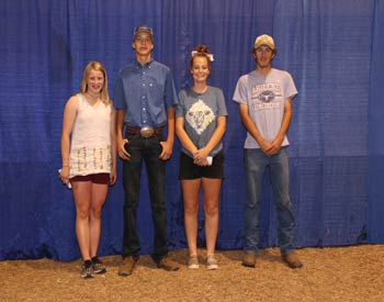 These Angus enthusiasts won top honors in the junior division of quiz bowl at the 2020 Kansas Junior Angus Association Preview Show, June 6-7 in Hutchinson, Kan. Pictured from left are Cohen Navinsky, Winchester, first place; Addie Haverkamp, second place and Dane Haverkamp, third place, both of Bern; and Cheyenne Brunker, Ottawa, fourth place. Photo by Jeff Mafi, American Angus Association.