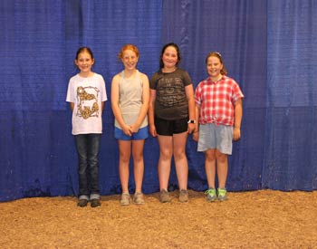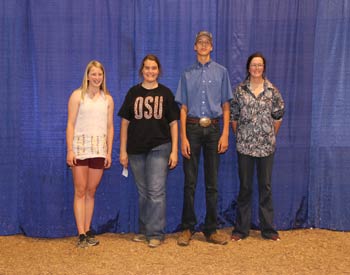 These junior Angus members won top honors in the junior division of team sales at the 2020 Kansas Junior Angus Association Preview Show, June 6-7 in Hutchinson, Kan. Pictured from left are Avery Mullen, Ulysses, first place; Molly Hill, Baldwin City, second place; Aubree McCurry, Burrton, third place; and Ruby Hill, Baldwin City, fourth place. Photo by Jeff Mafi, American Angus Association.