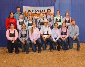 These young ladies and gentlemen were elected to serve on the Kansas Junior Angus Association board of directors and are pictured at the 2020 Kansas Junior Angus Association Preview Show, June 6-7 in Hutchinson, Kan. Pictured kneeling front row from left are Alexandria Cozzitoro, Olathe, president elect; Eva Hinrichsen, Westmoreland, first vice president; Kady Figge, Onaga, second vice president; Jayce Dickerson, Paradise, secretary; Baylee Wulfkuhle, Berryton, treasurer; Kelsey Theis, Leavenworth, historian; and Grady Dickerson, Paradise, past president. Second row from left are district directors Greta Rosenhagen, Cheney; Cohen Navinsky, Winchester; Austin Woodrow, Emporia; Kelly Newton, Elk City; Jensen Woodworth, Enterprise; Bailey Kerth, Sylvan Grove; and Addie Haverkamp, Bern. Back from left are Nicholas Siemens, Towanda, district director at large; and Dane Haverkamp, Bern, membership director. Photo by Jeff Mafi, American Angus Association.