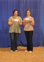 These junior Angus members won top honors in the senior division of quiz bowl at the 2020 Kansas Junior Angus Association Preview Show, June 6-7 in Hutchinson, Kan. Pictured from left are Alexandria Cozzitorto, Olathe, second place, and Baylee Wulfkuhle, Berryton, first place. Photo by Jeff Mafi, American Angus Association.