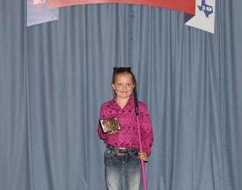 Karsyn Pack, Stephenville, Texas, won top honors in the peewee showmanship at the 2019 Texas Junior Angus Association State Show, June 8-9 in Belton, Texas. Photo by Radale Tiner, American Angus Association.