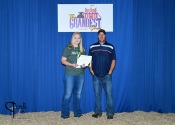 Nicole Stevenson, Joliet, Mont., left, received the Montana Angus Youth $2,000 Scholarship at the 2021 National Junior Angus Show (NJAS) Scholarship Presentation, July 14-16 in Grand Island, Neb. Pictured presenting the award is Cory Poser. Since 1998, the Angus Foundation has awarded more than $3.9 million in undergraduate and graduate scholarships to Angus youth. Photo by Pearl's Pics.
