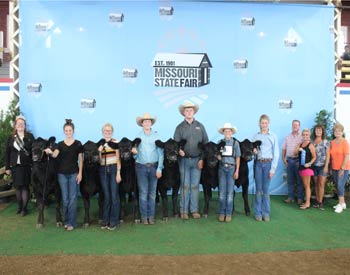 Ashlyn Richardson, Lincoln, Mo., won breeders' best six head at the 2019 Missouri State Fair Angus Show, Aug. 9 in Sedalia, Mo. Photo by Adam Conover, American Angus Association.