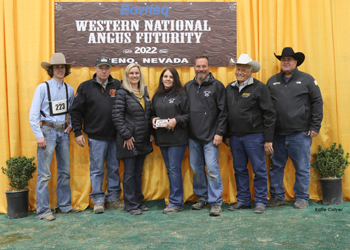 Express Angus Ranches, Yukon, Okla., won premier breeder at the 2022 Western National Angus Futurity (WNAF) Super Point Roll of Victory (ROV) Show, April 16 in Reno, Nev. Photo by Katie Colyer.