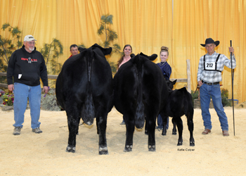 K Bar D, Redmond, Ore., showed the first place produce-of-dam at the 2022 Western National Angus Futurity (WNAF) Super Point Roll of Victory (ROV) Show, April 16 in Reno, Nev. K Bar D Wendy 29E produced the winning group. Photo by Katie Colyer.