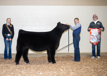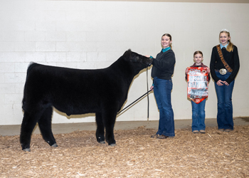 Kaycee Nelson, Ansley, Neb., exhibited the champion Angus-influenced market steer at the 2025 Nebraska Junior Angus Association Winter Kickoff Show, Dec. 7 in Kearney, Neb. Photo by Kyra Meyer.