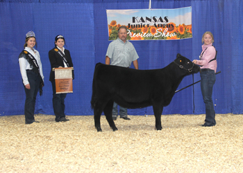 Jett McCurry, Colwich, Kan., won champion predominantly black Angus steer at the 2025 Kansas Junior Angus Association Preview Show, June 7-8 in Hutchinson, Kan. Photo by Jeff Mafi, American Angus Association.