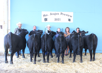 Richardson Ranch, Lincoln, Mo., won breeders' best six head at the 2021 Missouri Angus Association Preview Show, June 13 in Sedalia, Mo. Photo by Adam Conover, American Angus Association.