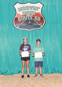 Cealy Bedwell, Holt, Mo., left; and Case Conley, Sulphur, Okla., right, received the Tom Burke Young Angus Achievement Award at the 2025 National Junior Angus Show (NJAS), June 28 - July 5 in Tulsa, Okla. Photo by Next Level Images.