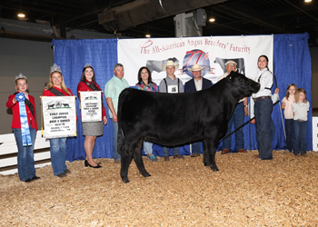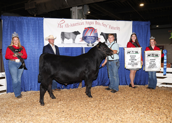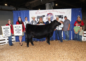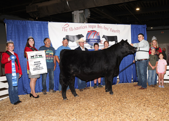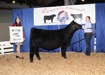 Seldom Rest Pin Up Gal 4146 won fifth overall owned champion female at the 2025 All-American Breeders' Futurity Junior Show, June 14 in Louisville, Ky. Blane Smith, Russell Springs, Ky., owns the July 2024 daughter of KR Casino 6243. She earlier won intermediate champion. Mark Davis, Shelbyville, Tenn., evaluated the 72 entries. Photo by Next Level Images.