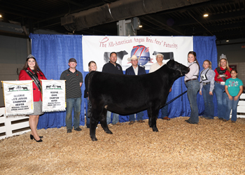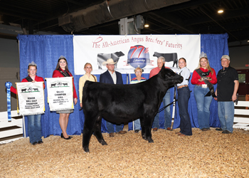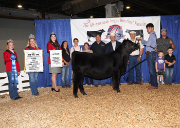 Johnson Hot Rod won grand champion steer at the 2025 All-American Breeders' Futurity Junior Show, June 14 in Louisville, Ky. Seth Chunglo, Harrodsburg, Ky., owns the March 2024 son of Silveiras Style 9303. Mark Davis, Shelbyville, Tenn., evaluated the 72 entries. Photo by Next Level Images.