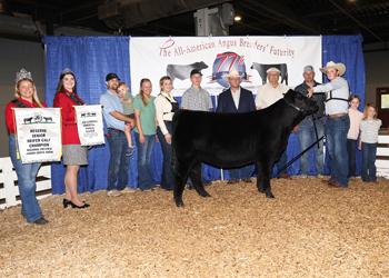 Johnson Nellie 460 won fourth overall owned champion female at the 2025 All-American Breeders' Futurity Junior Show, June 14 in Louisville, Ky. Curtner Bergmann, Vienna, Ill., owns the October 2024 daughter of BNWZ Dignity 8017. She earlier won reserve senior calf champion. Mark Davis, Shelbyville, Tenn., evaluated the 72 entries. Photo by Next Level Images.