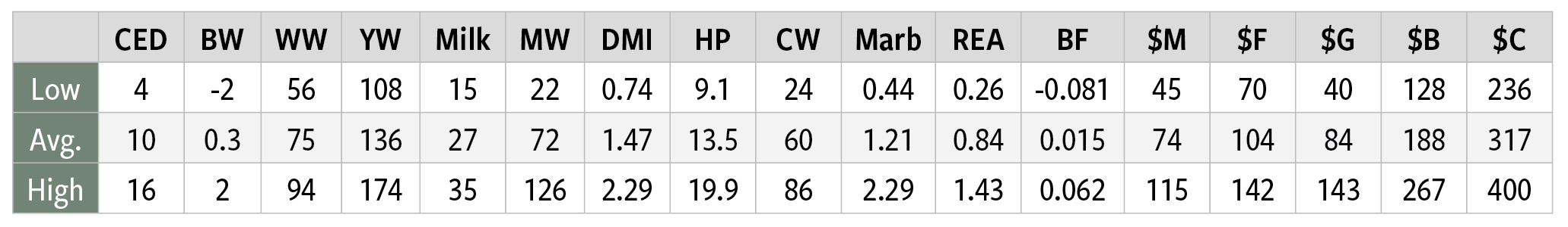 The top 25 registered Angus sires, which represented 52,086 head, or 17.3%, of the total registrations for Angus in fiscal year 2023, had ample variation. Table 1 shows the low, high and average EPDs for this group of Angus sires.