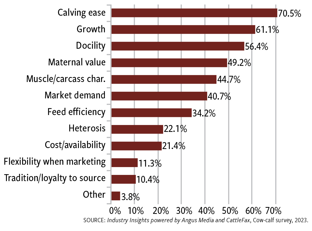 While the No. 1 reason for bull breed choice was still calving ease (see Fig. 1), the diversity of the Angus breed continues to make it one of the top, most versatile breeds of choice because it also checks the box for those other traits of importance.