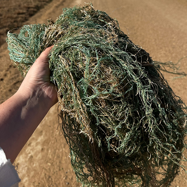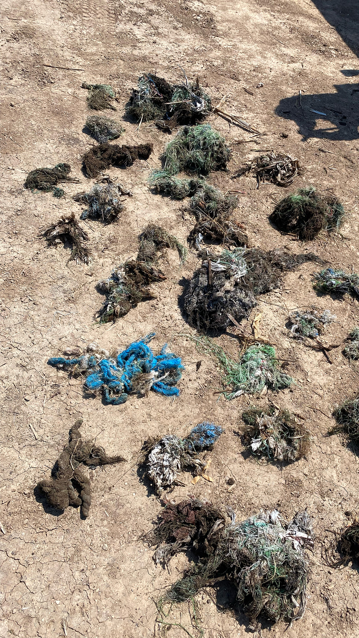 “In our compost piles everything decomposes pretty quickly except net wrap, baling twine and the like,” says Freeman, explaining that research shows polypropylene and polyethylene material can take 100 years or longer to degrade if left in the environment. “Pictures can be deceiving, but we have some pieces that are as big as a basketball. It’s unbelievable.”