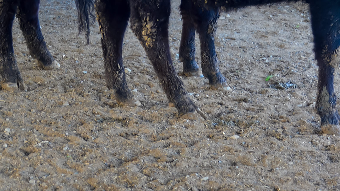 The environment can also be a factor. Running cattle in rough country with lots of sharp rocks and difficult terrain can cause abrasions in the skin and hooves. In challenging environments, you may need to check cattle more often to make sure that bacteria haven’t taken advantage of that opportunity to invade where the skin barrier has been damaged. Having freestanding water and excess mud in pastures can predispose cattle to more foot rot issues, as well. Concrete flooring, whether in dairies or in working systems, wears down their toes, which causes the soles to become thinner. This can lead to toe abscesses and infection in the P3 bone located at the end of their toe.