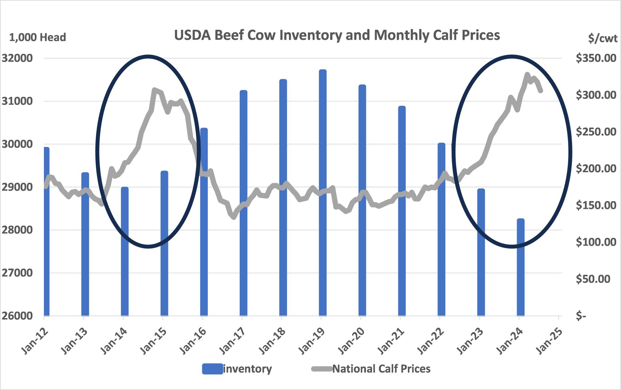 In terms of where we are in the cattle cycle today compared to in 2015, the price trends look similar as if we have already seen peak prices and are headed for lower prices. However, the difference to notice between 2024 and 2015 is inventory levels and the rate of expansion. In 2015, expansion had already started when prices were at the levels we are seeing today. There was no incentive for prices to climb back up after the typical dip in the fall.