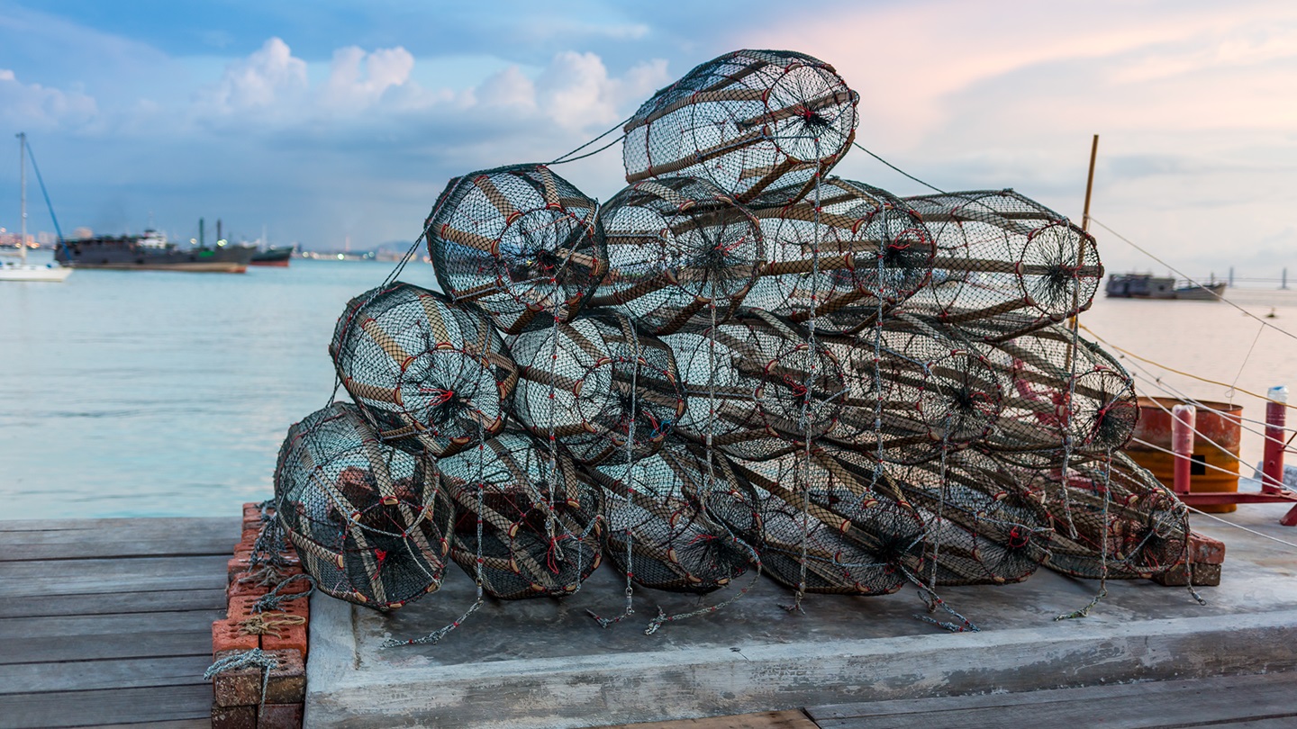 The crabs eventually eat the small amount of bait, but by then there are quite a few crabs in the trap. When a crab decides to crawl out, others reach up and pull it back in. The opening at the top of the cage never closes; it is the other crabs that prevent anyone from escaping.