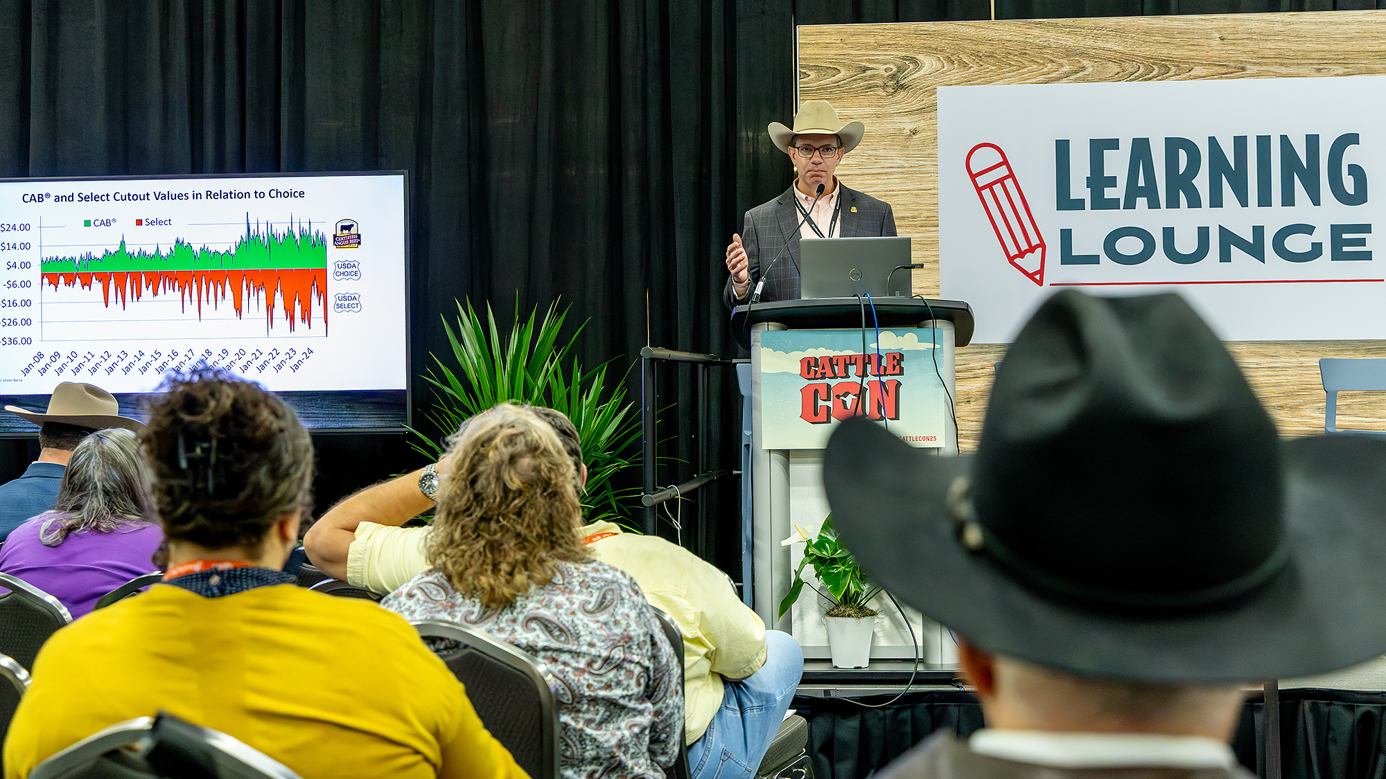 Paul Dykstra presents during a Learning Lounge session at the 2025 Cattle Industry Convention in San Antonio, Texas. [Photo courtesy of the American Angus Association.]
