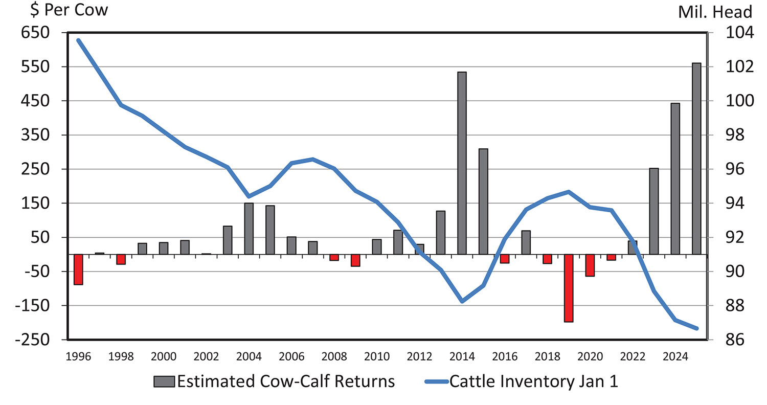 Fig. 3: U.S. annual cow-calf returns and cattle inventory