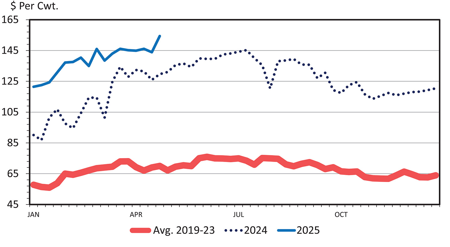 Data source: USDA-AMS. Livestock Marketing Information Center • C-P-35 • 04/28/25.
