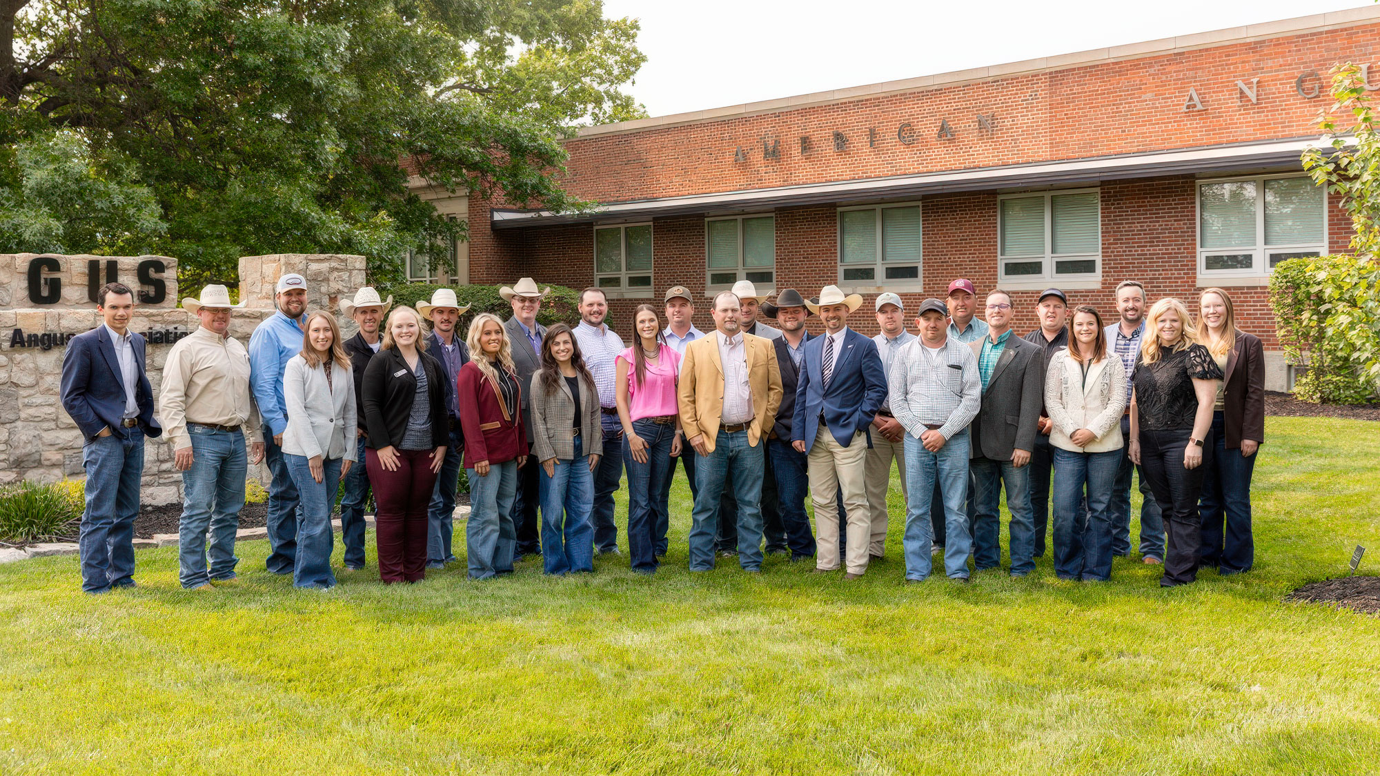 The 2025 Beef Leaders Institute class gathers outside of the American Angus Association’s headquarters in Saint Joseph, Mo., during one of their educational stops.