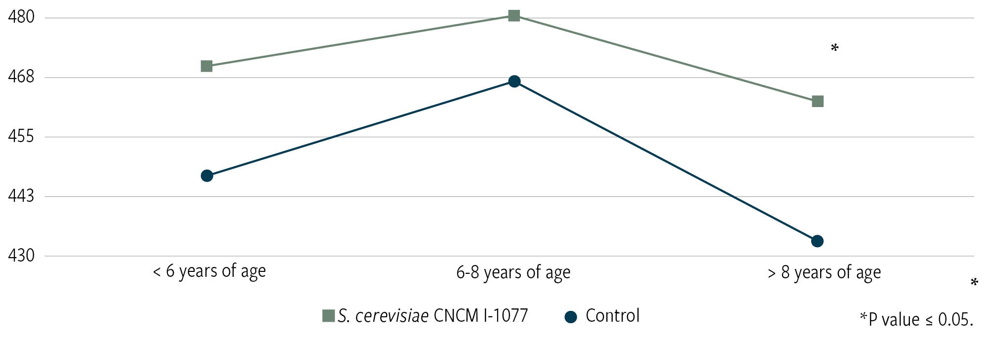 A recent study showed supplementing cows with the yeast S. cerevisiae CNCM I-1077 resulted in 22 pounds (lb.) overall increase in calf weaning weight.2 This data even held true when looking by the cow’s age, where cows older than 8 years weaned calves 32 lb. heavier than other age groups (see Fig. 2).2 This demonstrates the effectiveness that a live yeast can have on improved rumen function in older cows to aid in extending their lifetime productivity.