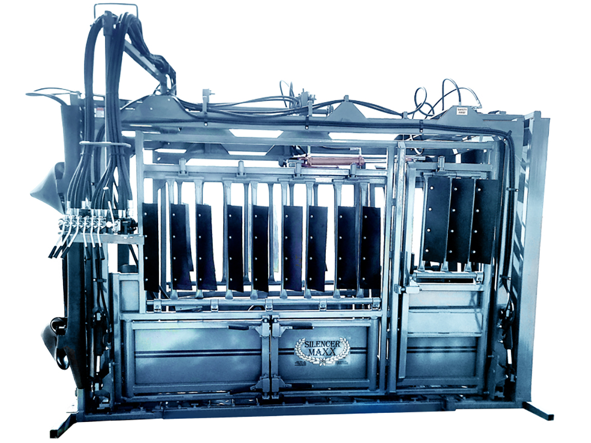The Silencer Maxx model adds extra height and width to the design. It includes patented full-opening head and tail doors, providing 30” of clearance so full-term cows and herd bulls enter and exit the chute without hanging up their lower bodies.