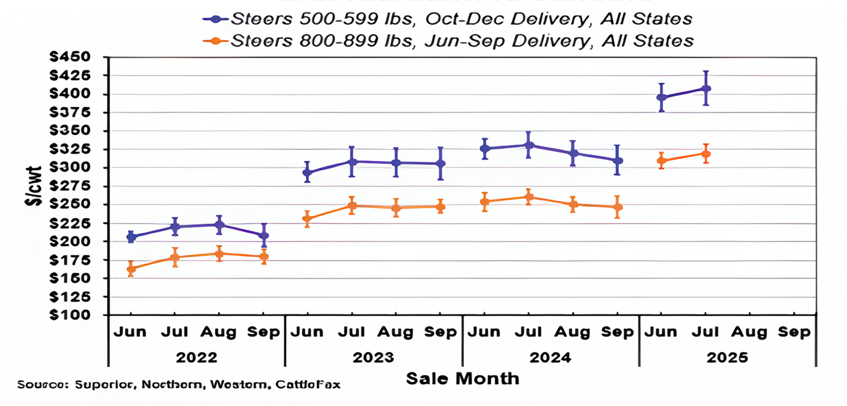 - Despite historically high price levels, we are also seeing historically high price differentiation. We used to see a $10 swing within 50-lb. windows for calves selling on the same day with similar freight costs. Today we are seeing $20-$40 swings. The result is that every day we are experiencing vastly different markets. Genetics are the primary differentiator in the marketplace, and that value is growing.