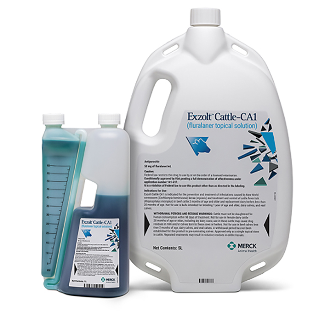 Merck Animal Health announces the U.S. Food and Drug Administration (FDA) granted conditional approval for Exzolt™ Cattle-CA1, the newest class of parasiticides known as isoxazolines. The pour-on solution is effective for the prevention and treatment of infestations caused by New World screwworm (Cochliomyia hominivorax) larvae (myiasis). It is also conditionally approved for the treatment and control of cattle fever tick (Rhipicephalus microplus).