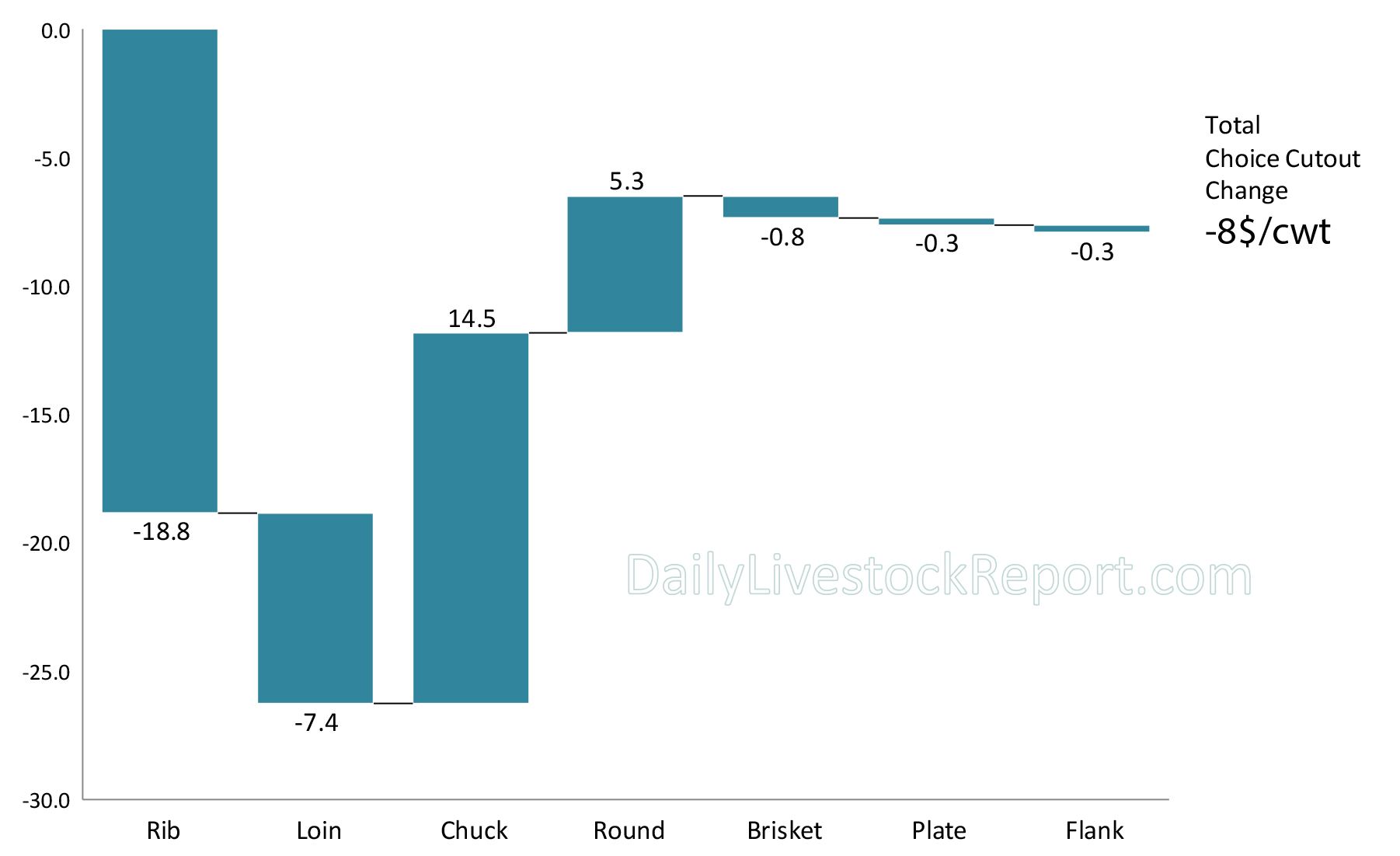 Fig. 2: Choice beef cutout value since Dec. 15 and contribution by primal