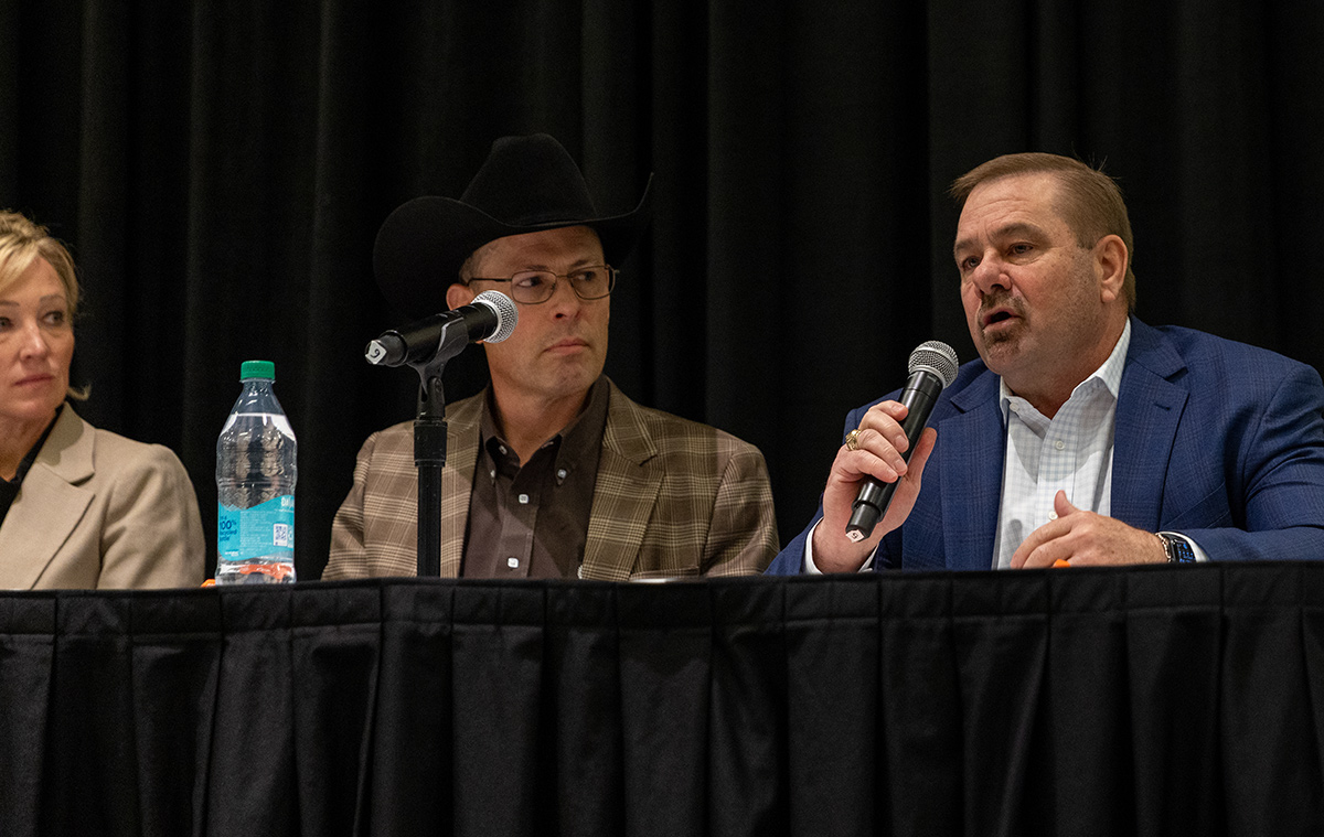 Joe Don Eilers, vice president of merchandising for Sysco, alongside fellow panelists at the BQA Producer Forum during CattleCon 2026.
